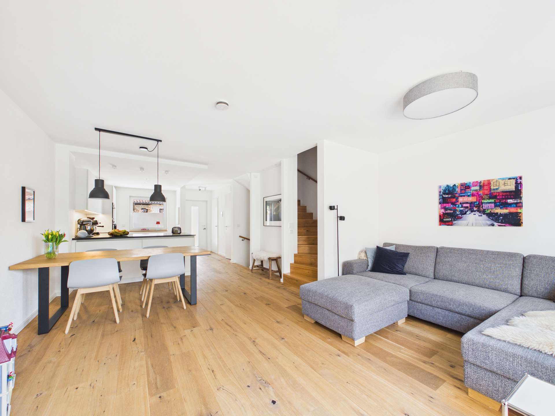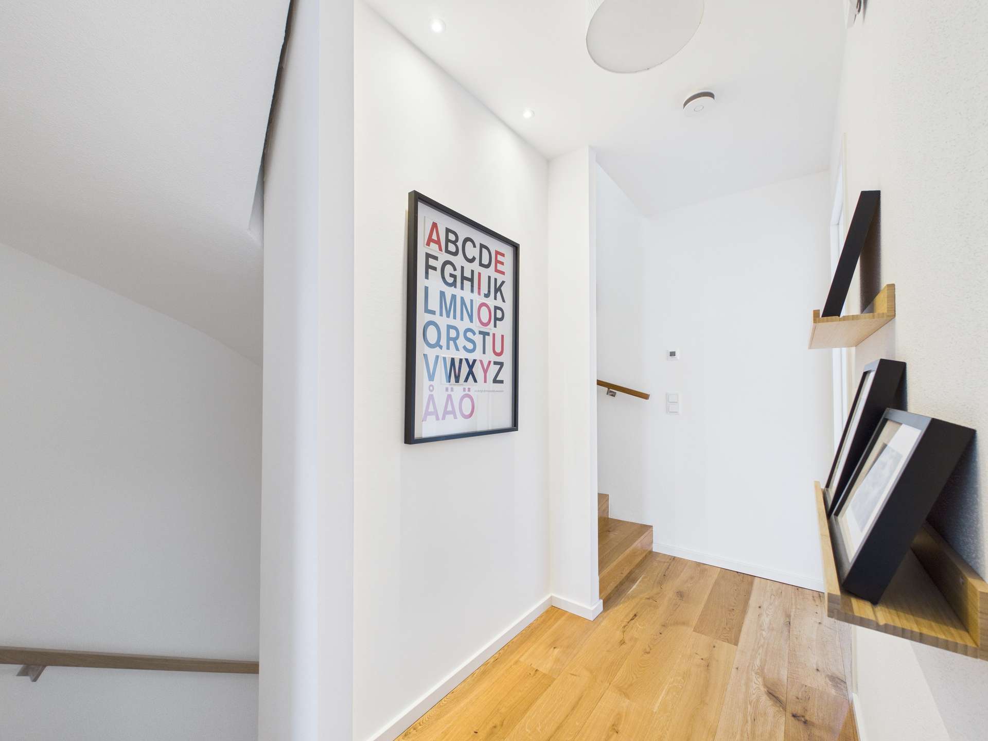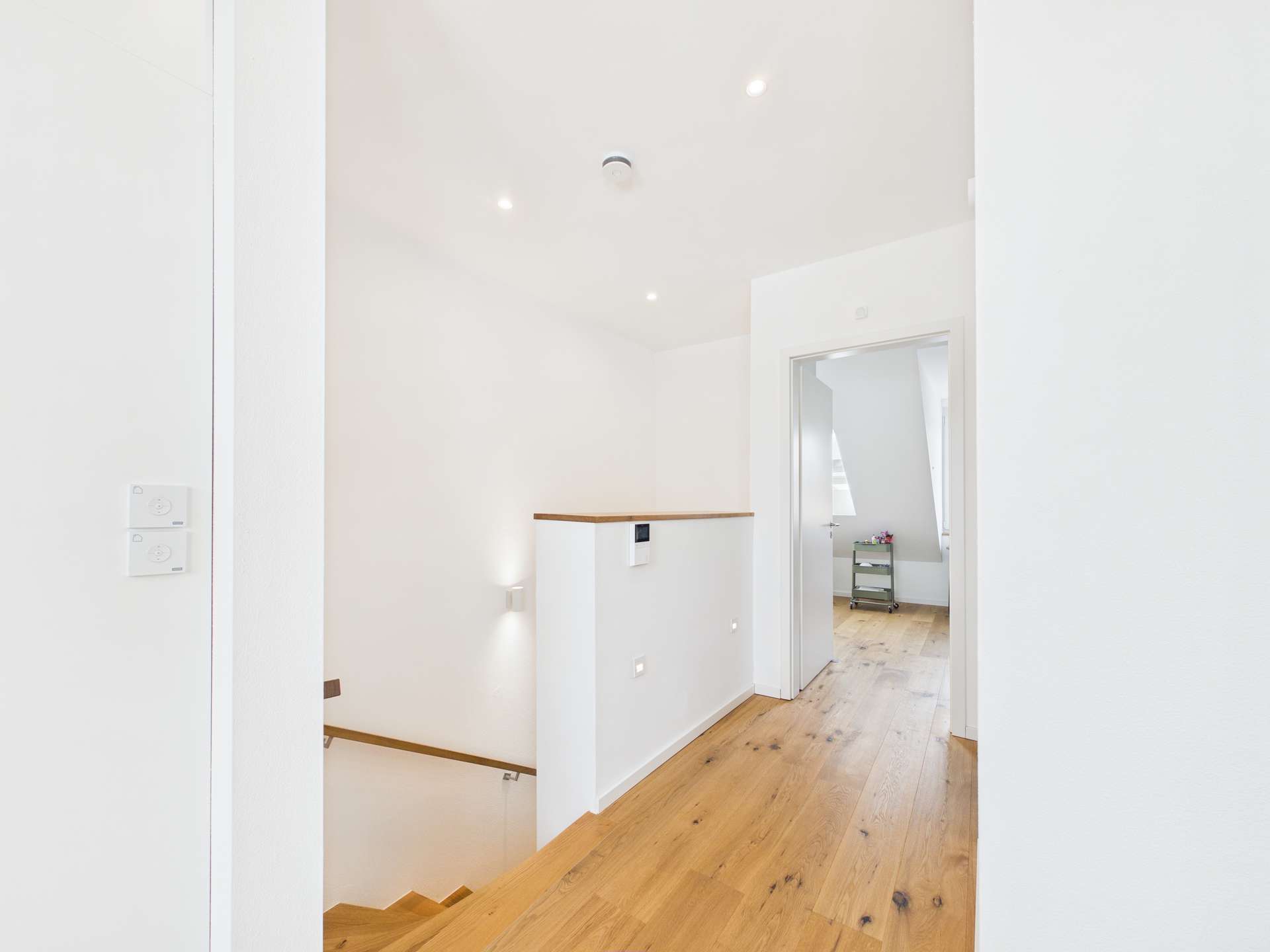 Das Haus wurde mit viel Liebe zum Detail und einem hohen Anspruch an Qualität realisiert und präsentiert sich in einem äußerst gepflegten, neuwertigen Zustand. Im Inneren sorgen edle Holzböden für eine warme und hochwertige Wohnatmosphäre. Die Immobilie verfügt über zwei stilvoll ausgestattete Badezimmer im 1. Obergeschoss und im Dachgeschoss und bietet damit optimalen Komfort für Familien oder Paare mit Platzbedarf. Die Raumstruktur ist modern gestaltet und ermöglicht ein offenes und lichtdurchflutetes Wohnen über mehrere Ebenen hinweg.