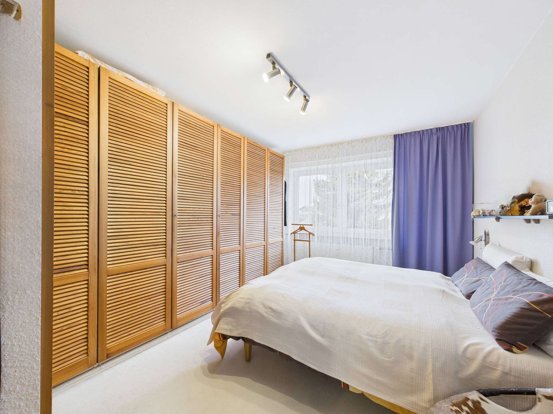 Das größere Schlafzimmer mit etwa 14 Quadratmetern bietet ausreichend Platz für ein großes Bett und einen Kleiderschrank und ist mit Teppichboden ausgestattet. Ein weiteres Zimmer mit knapp 10 Quadratmetern eignet sich ideal als Kinderzimmer, Büro oder Gästezimmer und verfügt über Laminatboden.