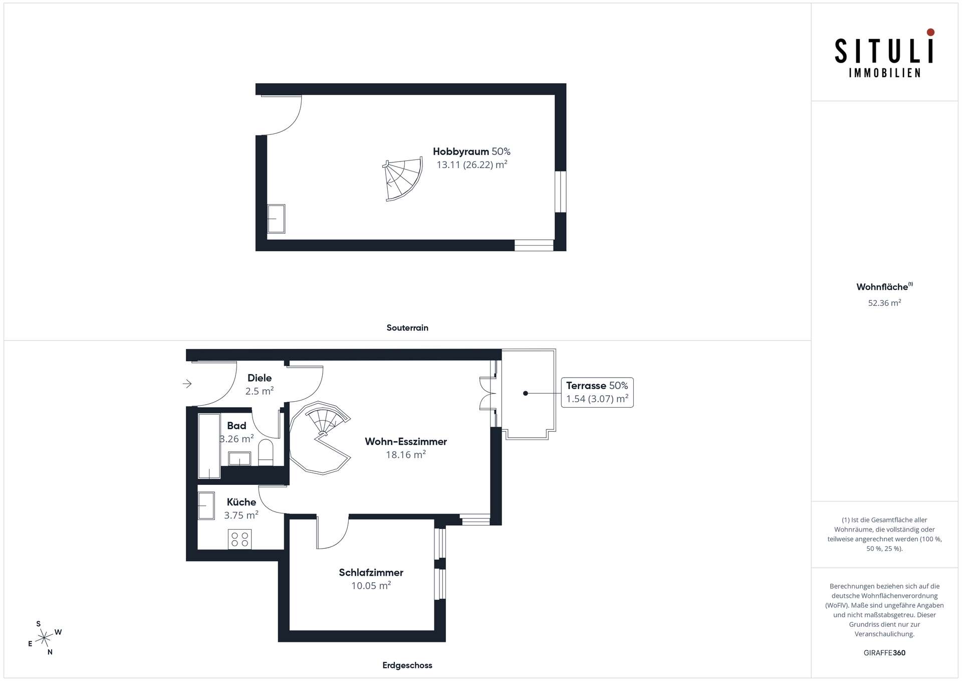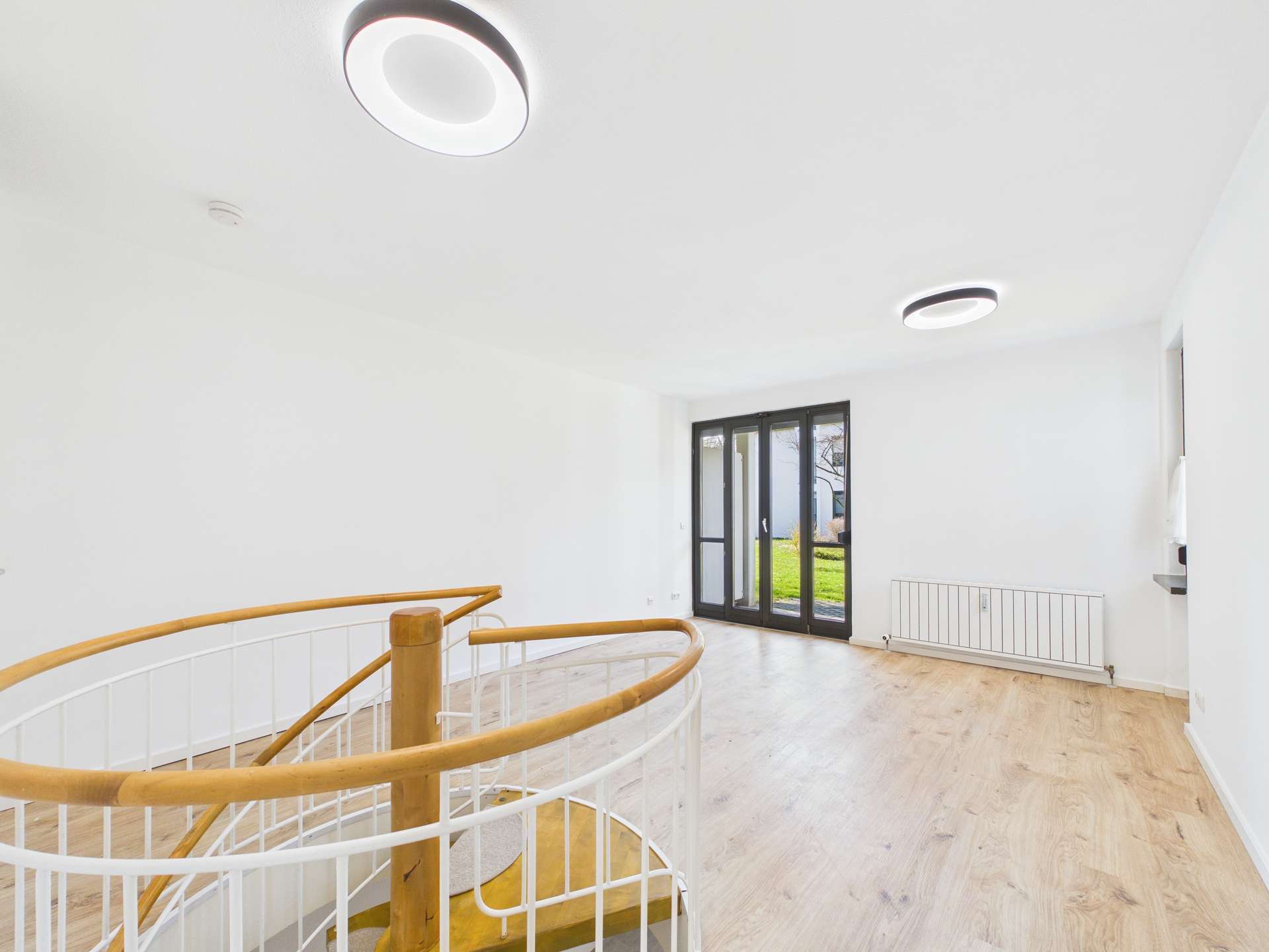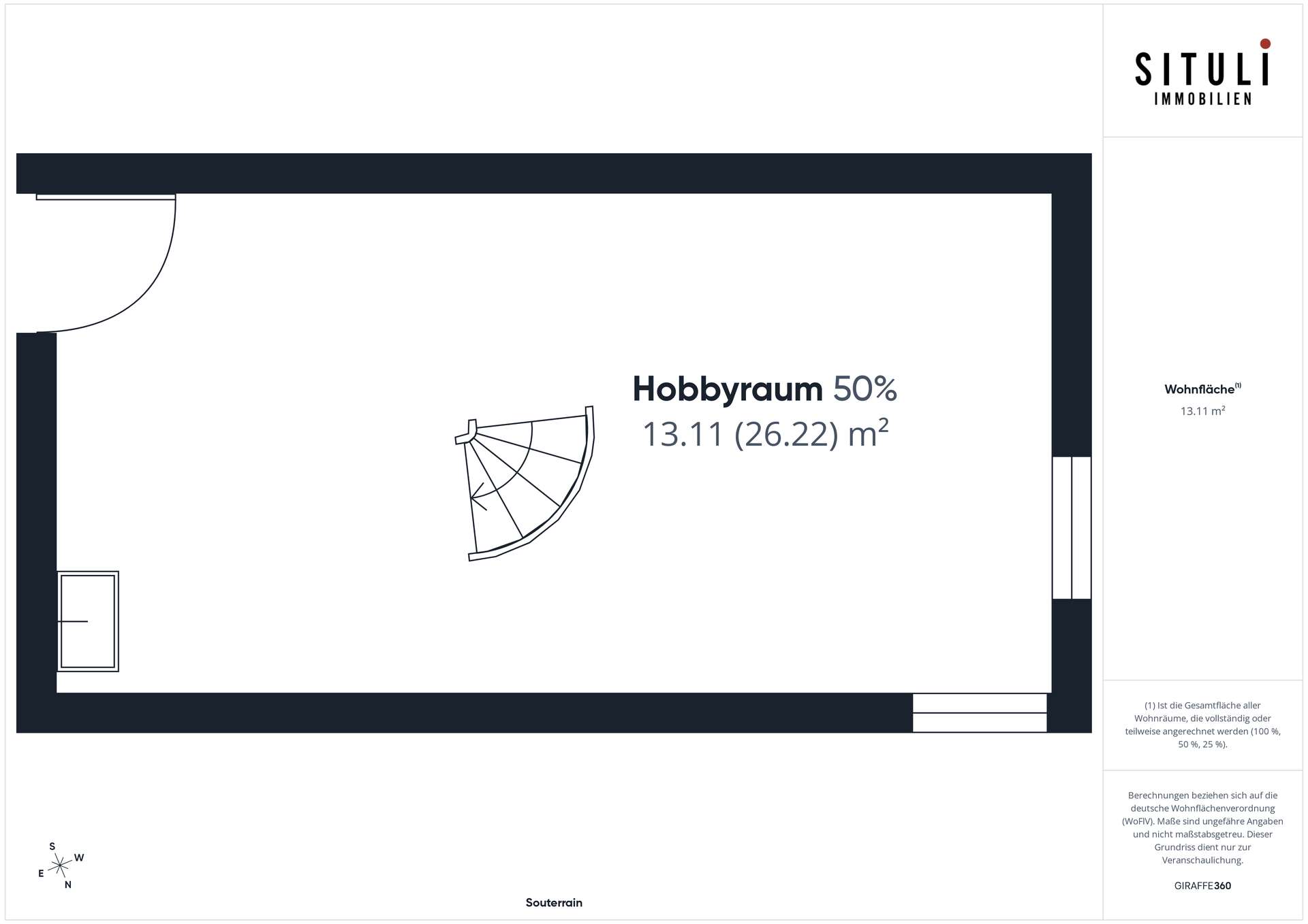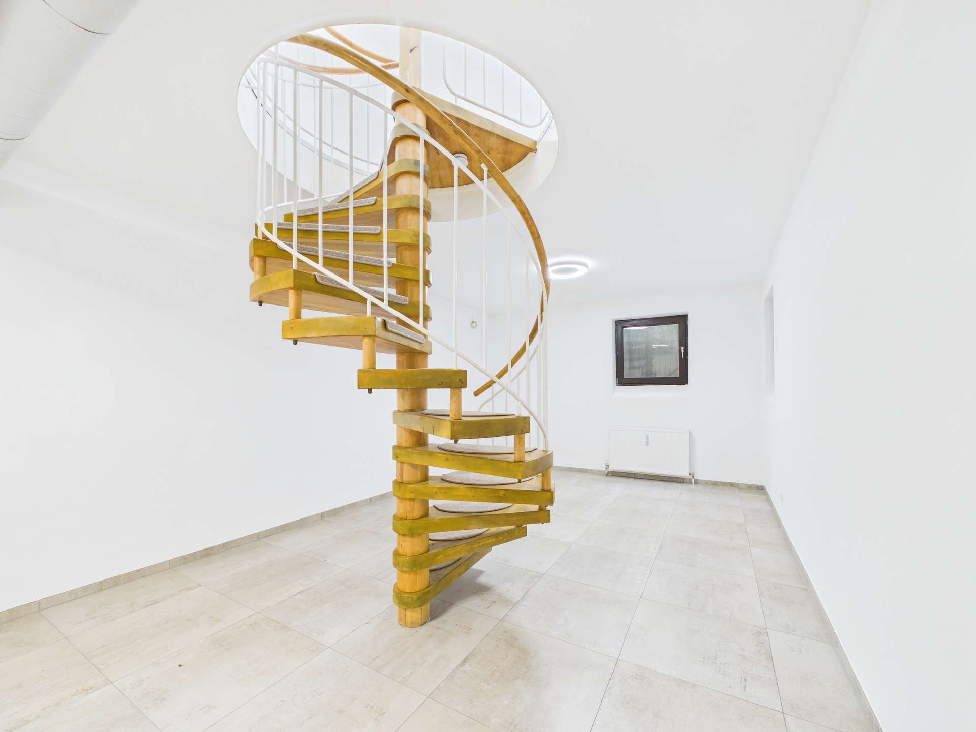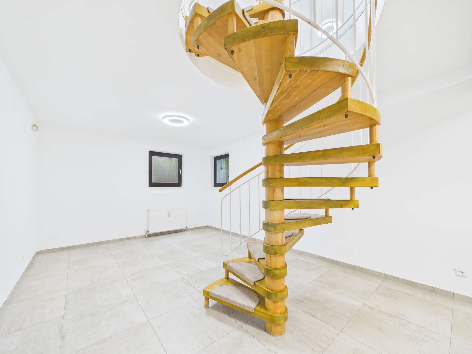 Über eine schöne Wendeltreppe aus Holz erreichen Sie das Souterrain der Wohnung. Hier befindet sich ein rund 26 Quadratmeter großer Hobbyraum, der dank zweier Fenster, Heizung und angenehmer Raumhöhe auch hervorragend als zusätzliches Schlafzimmer, Büro oder Gästezimmer genutzt werden kann. Bei Bedarf lässt sich durch eine einfache Abtrennung ein separater Bereich mit Abstellraum und Waschmaschinenanschluss schaffen. Die Maisonette-Struktur verleiht der Wohnung ein besonderes Wohngefühl und sorgt für eine klare Trennung zwischen Wohn- und Rückzugsbereichen.