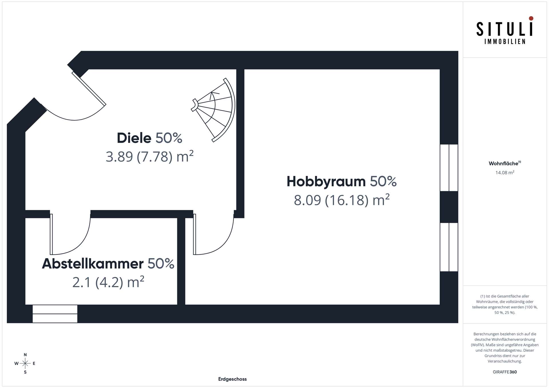 Über eine Wendeltreppe erreicht man das Souterrain der Wohnung. Hier befindet sich ein rund 16 Quadratmeter großer Hobbyraum, der dank zweier Fenster, Heizung und angenehmer Raumhöhe auch hervorragend als zusätzliches Schlafzimmer, Büro oder Gästezimmer genutzt werden kann. Ergänzt wird diese Ebene durch einen separaten Abstellraum mit Waschmaschinenanschluss, der praktischen Stauraum bietet und den Alltag erleichtert. Die Maisonette-Struktur verleiht der Wohnung ein besonderes Wohngefühl und schafft eine klare Trennung zwischen Wohn- und Rückzugsbereichen.
