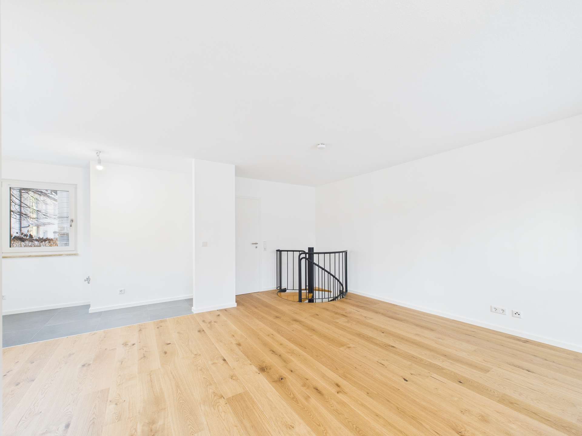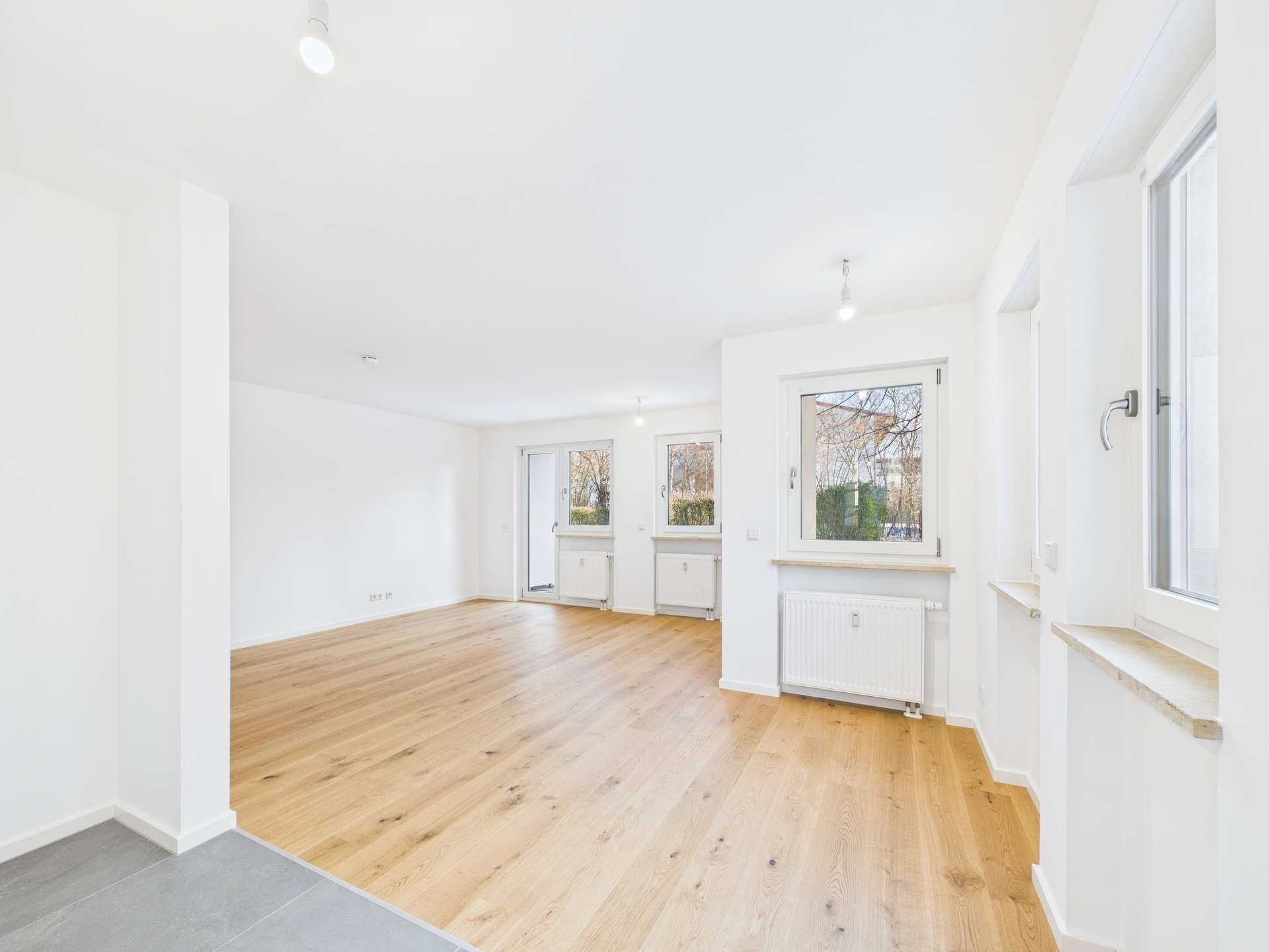 • Holzparkett und hochwertige Fliesen